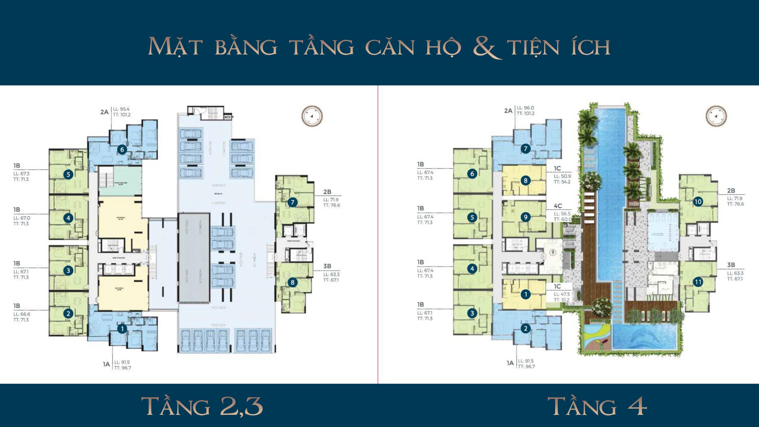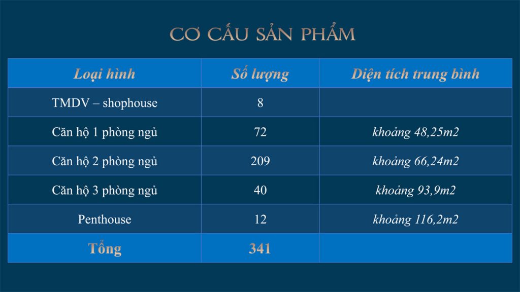 | Diện tích | 48 – 97 m² (1 phòng ngủ – 3 phòng ngủ) |
