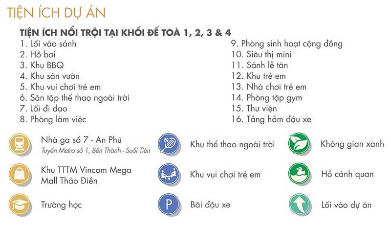 Masteri An Phú một dự án đi đầu về phong cách mới chỉ dành riêng cho giới thượng lưu , là dự án căn hộ cao cấp, hiện đại thừa hưởng được tất cả tiện ích ngoại khu tại khu xung quanh khu vực Thảo Điền . Bên cạnh đó cư dân tại đây còn được tận hưởng chuỗi tiện ích nổi trội khác tại đây : Trung tâm thương mại , hồ bơi , Spa , phòng tập đa chức năng , khu vui chơi dành cho trẻ … sẽ mang lại cho bạn một thời gian tuyệt vời nhất khi sinh sống tại đây