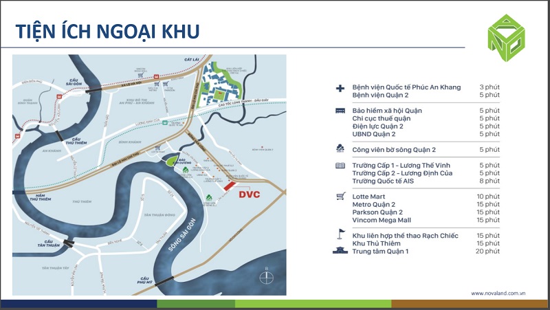 Có thể nói, dự án Victoria Village quận 2 là một trong số ít những dự án sở hữu hệ thống tiện ích ngoại khu đầy đủ bậc nhất khu vực quận 2. Điều này cho thấy sự quan tâm, nghiên cứu sâu rộng của nhà đầu tư từ khâu chọn vị trí xây dựng dự án. Chỉ trong thời gian tối đai 20 phút, cư dân có thể tìm thấy hàng loạt dịch vụ y tế, trường học, trung tâm hành chính, siêu thị…để phục vụ cho nhu cầu sống hằng ngày.