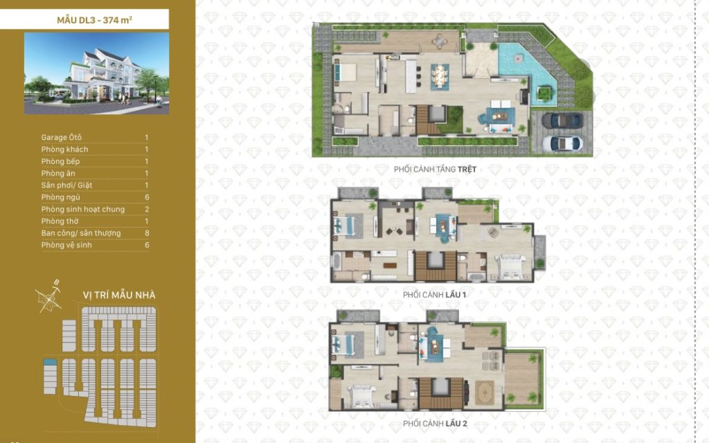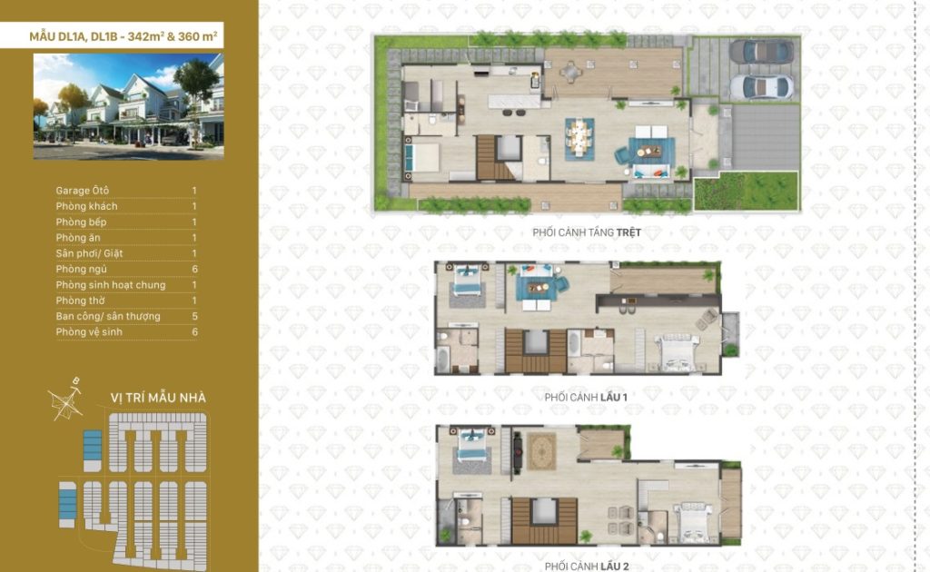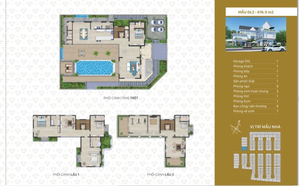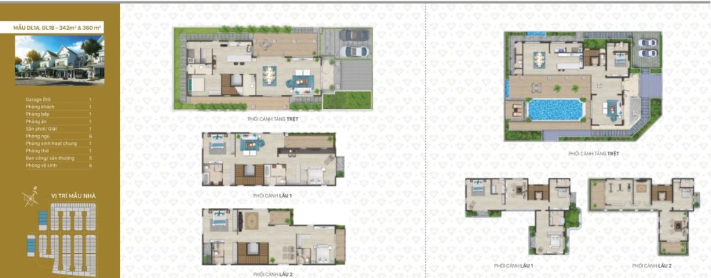 - Gồm phòng khách, 3 phòng ngủ, phòng sinh hoạt chung, bếp, phòng ăn, ...+ garage;